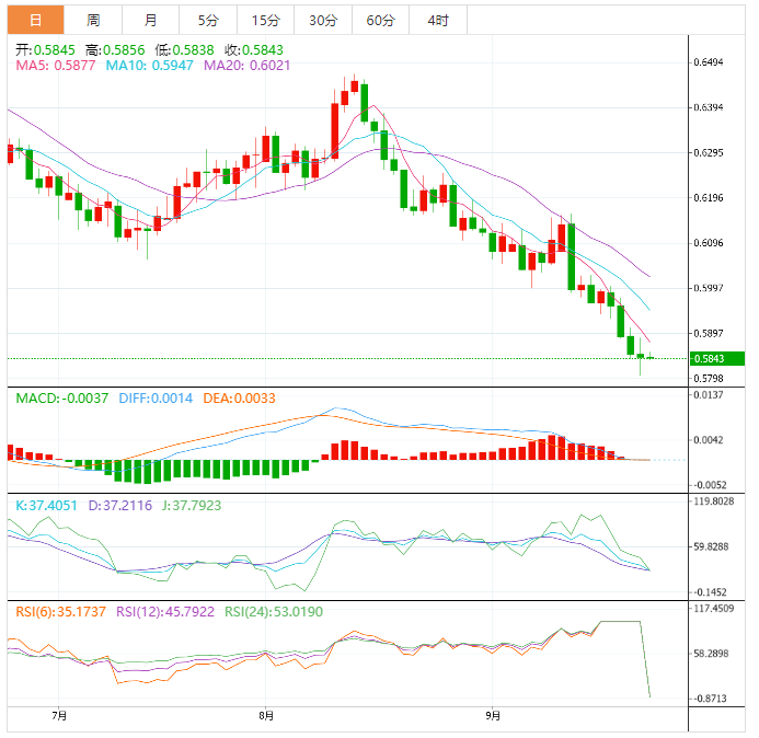 新西兰元跌至近两年低点,外界越来越担心各国央行纷纷收紧货币政策,可能会导致全球经济陷入衰退。截止目前,纽元兑美元的交易价为0.5845,比开盘价低0.11% 美联储周四决定加息75个基点,并强调可能维持紧缩周期。经济预测摘要()显示,FOC成员预计联邦基金利率(FFR)将在4.4%左右结束。 在新闻发布会上,杰罗姆