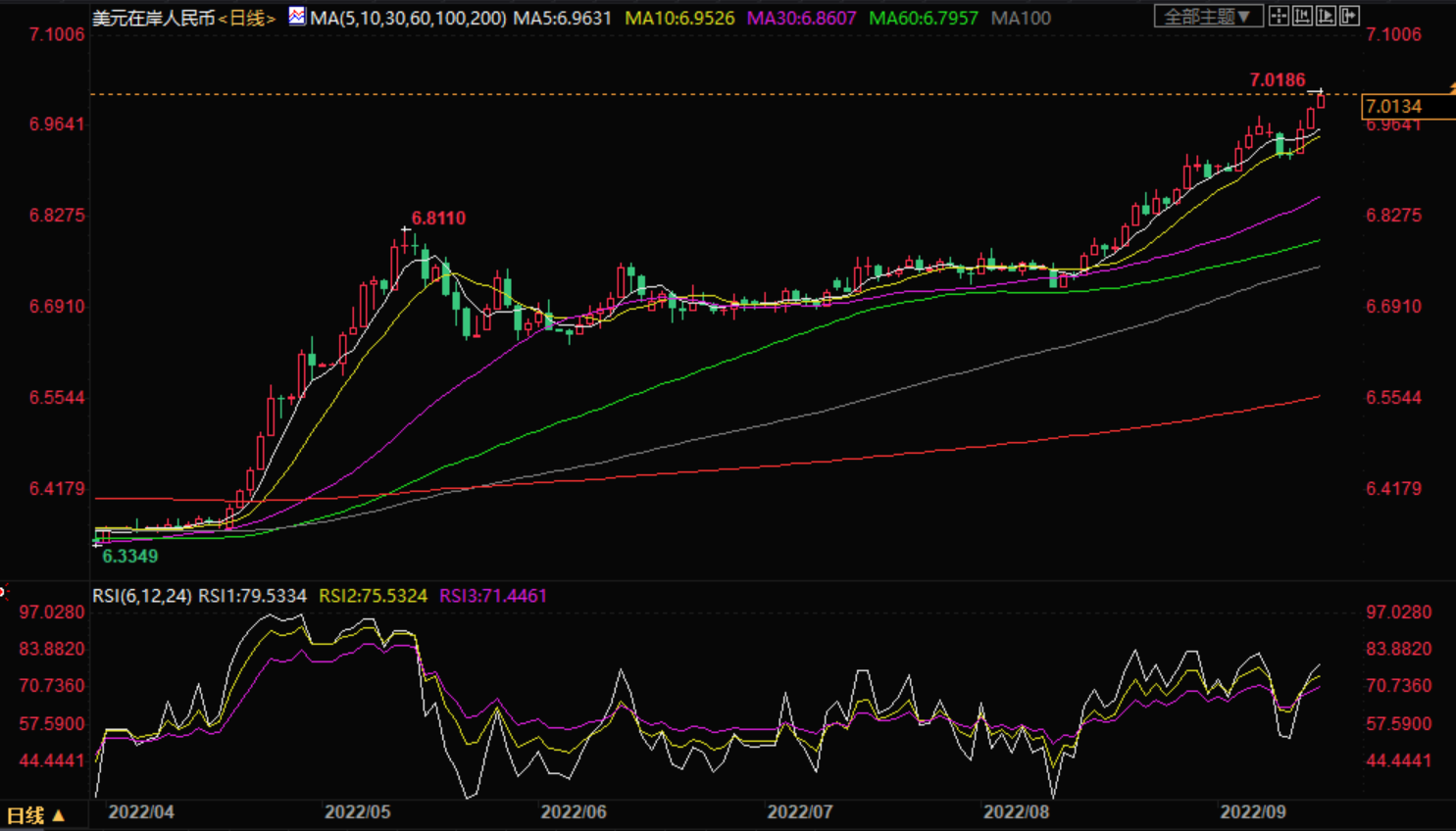 美元兑人民币汇率自2020年以来首次跌破关键的7美元关口后,中国维持了货币防御。过去10年里,人民币很少突破这一关口。截止目前,美元在岸人民币报7.0137,美元离岸人民币报7.0256。 中国人民银行将人民币汇率中间价定在1美元兑6.9305元,比彭博社调查分析师和交易员的平均预期高出456个点,标志着人民币汇率中