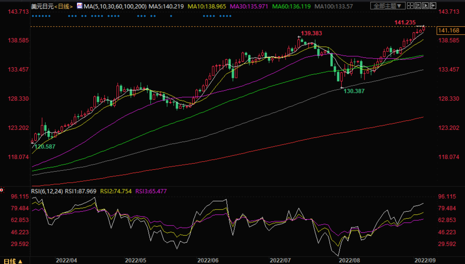 周二盘中,美元兑日元刷新1998年以来最高水平,录得八连升。汇价上涨至140.97,同时受益于美国国债收益率上升以及市场的风险偏好情绪。 基本面上,日本数据走软似乎推升了美元兑日元。早些时候,日本7月总体的家庭支出同比下降至3.4%,预期4.2%,前值3.5%。此外,劳动现金收入年率也下降至1.8%,市场共识2.5%,前值2.