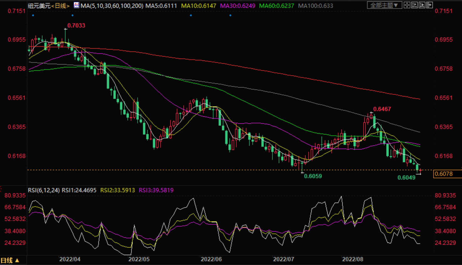 周五盘中,纽元兑美元回调至0.6070。在这期间,纽元/美元自20小时均线回调,同时处在短线看跌通道内。 基本面上,市场似乎相信美联储将坚持其激进的政策收紧之路并一直定价该央行在9月加息75个基点。近期多位美联储官员的鹰派讲话确认了该押注,依然支持美国国债收益率进一步上升。事实上,对加息预期高度敏感的2年期