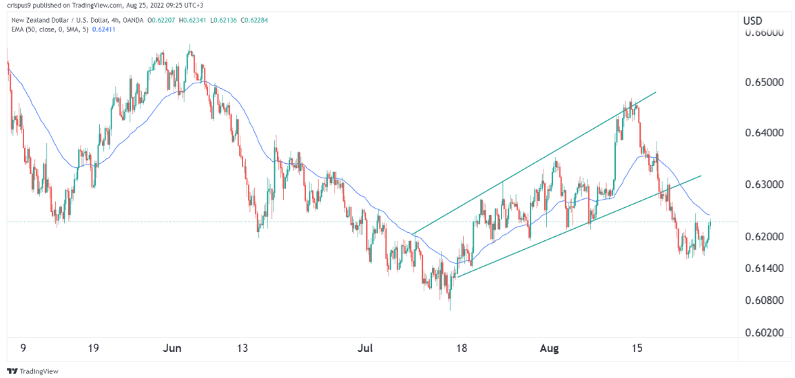 即使在新西兰零售数据相对疲软之后,纽元兑美元的价格仍有所上升。周四,汇率升至0.6227的高点,高于本周的低点0.6160。 新西兰的零售和杰克逊霍尔央行会议 新西兰公布相对疲弱的零售数据后,纽元兑美元汇率小幅上升。这些数据显示,由于通货膨胀持续上升,该国第二季度的销售额下降了2.3%。这一下降比预期中值1.7