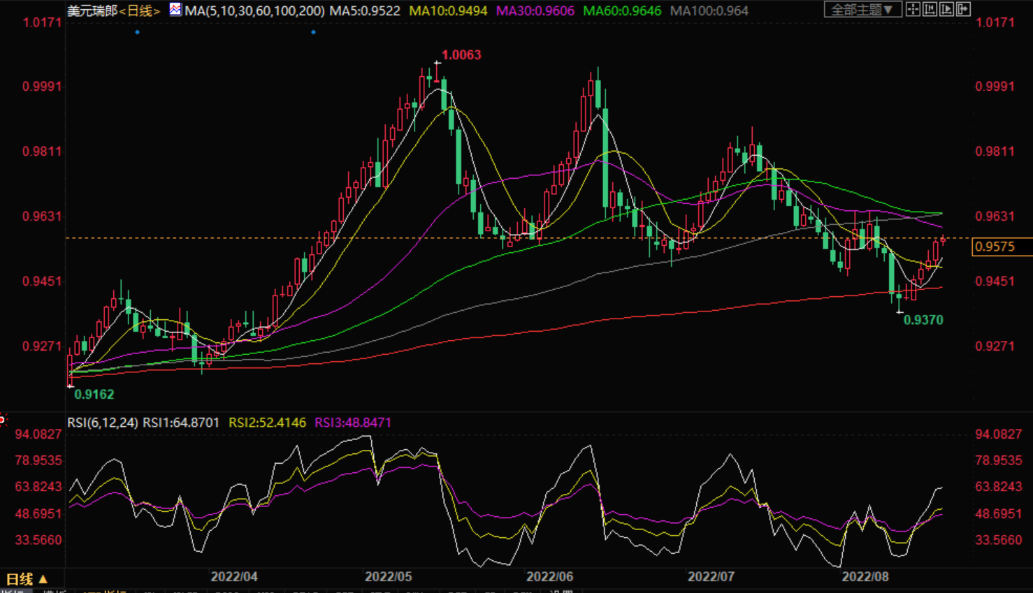 美元兑瑞郎升至两周以来的新高,原因是美元全面走强,加上周五亚洲时段期权市场信号更为强劲乐观。也就是说,瑞士货币(瑞郎)对印出了一个5天的上升趋势,刷新了约0.9585的两周高点,截至发稿时为0.9575。 一个月的风险逆转(RR),即看涨期权和看跌期权之间的差异,在周四的北美交易日结束时达到0.070的水平,跳升