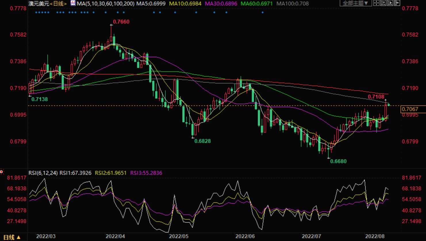 澳元兑美元在0.7080附近徘徊,此前上涨至两个月来的新高,因为最近美联储的讲话和围绕中国关税的头条新闻似乎刺激了多头。也就是说,在澳大利亚发布月度消费者通胀预期之前,澳元对交易者仍保持谨慎。 澳元兑美元汇率走势基本面解读 在美国通胀数据缓和了市场对美联储未来大幅加息的预期后,澳元兑美元出现了自6月