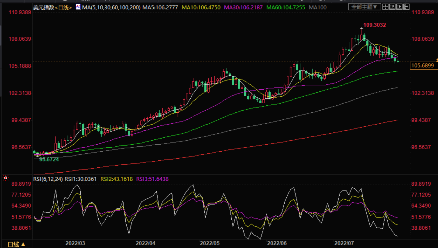美元指数暂停了在月度低点附近的三天下跌趋势,在周一盘中守住了接近105.80的低点。在市场情绪温和悲观、以及在关键的美国就业报告和7月份I采购经理人指数(i)公布前的谨慎情绪中,美元指标弥补了近期的损失。 也就是说,美国核心个人消费支出(C)价格指数(美联储首选的通胀指标)6月份同比上升4.8%,前值为4.7%。