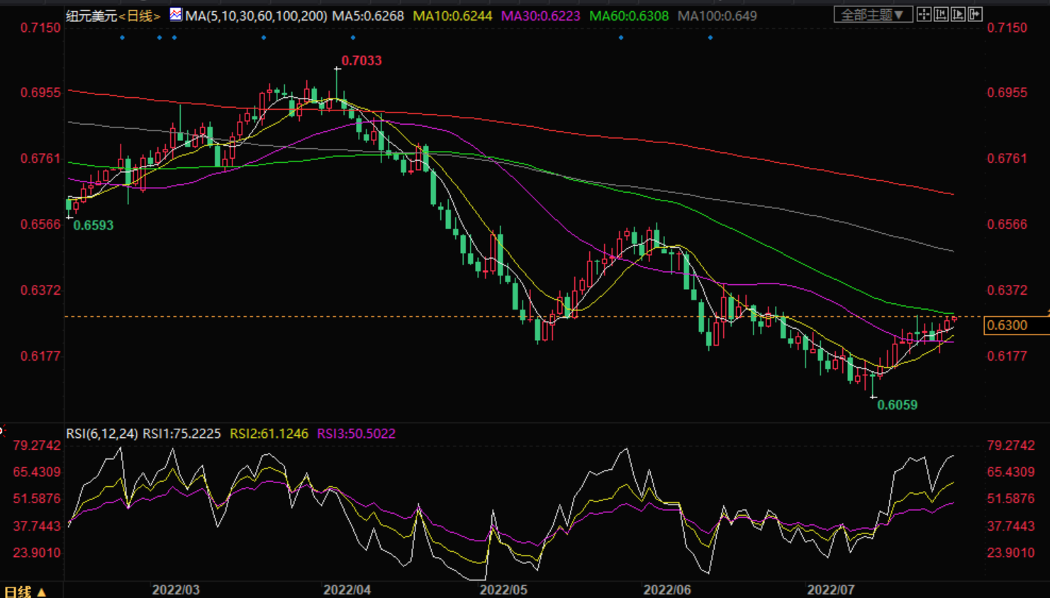 周五亚洲时段,纽元兑美元小幅走高,交投于0.6291。美联储周三会议后,大宗商品和股市环境转好,令美元兑美元受益。美联储声明令与美联储政策预期相关的期货市场倾向于在下次会议上更温和地加息。 美联储导致美元走软,根据DXY(衡量美元与一篮子主要货币的汇率),美元目前在106附近徘徊。市场也在消化美国经济增长数