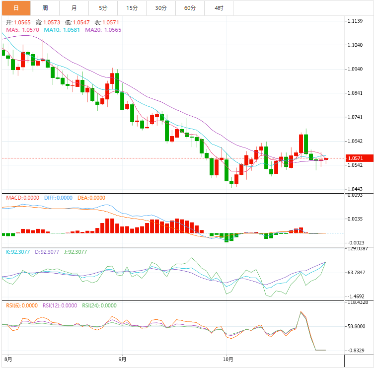 周一欧洲交易时段,欧元兑一篮子主要货币走高,欧元兑美元有望在5天内首次获利,并从两周低点回升。 欧洲10月份将公布重要的通胀数据,这对于衡量欧洲央行面临的压力至关重要。 欧元兑美元上涨0.1%,至1.0570,盘中低点为1.0555。上周五,由于欧洲央行会议的压力,欧元兑美元连续第四个交易日下跌0.1%。 上周欧