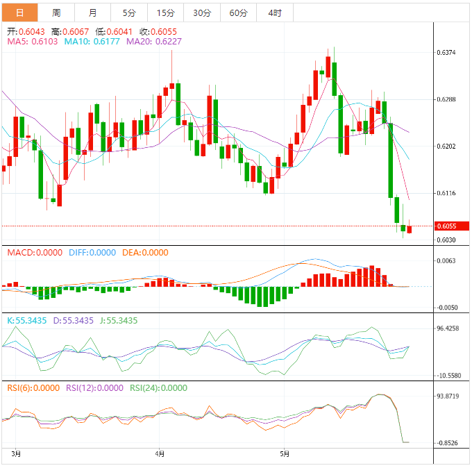周一盘中,纽元兑美元上涨至0.6058,涨幅0.17%。 基本面上:纽元/美元延续反弹突破0.6060上方。美国批准上调债务上限对美元指数产生了很大影响,预计纽元/美元将进一步扩大反弹走势。尽管纽储行(RZ)上周将加息25个基点),至5.50%,但纽元/美元仍然面临压力。纽储行助理行长Karilk警告说,央行必须警惕过度紧