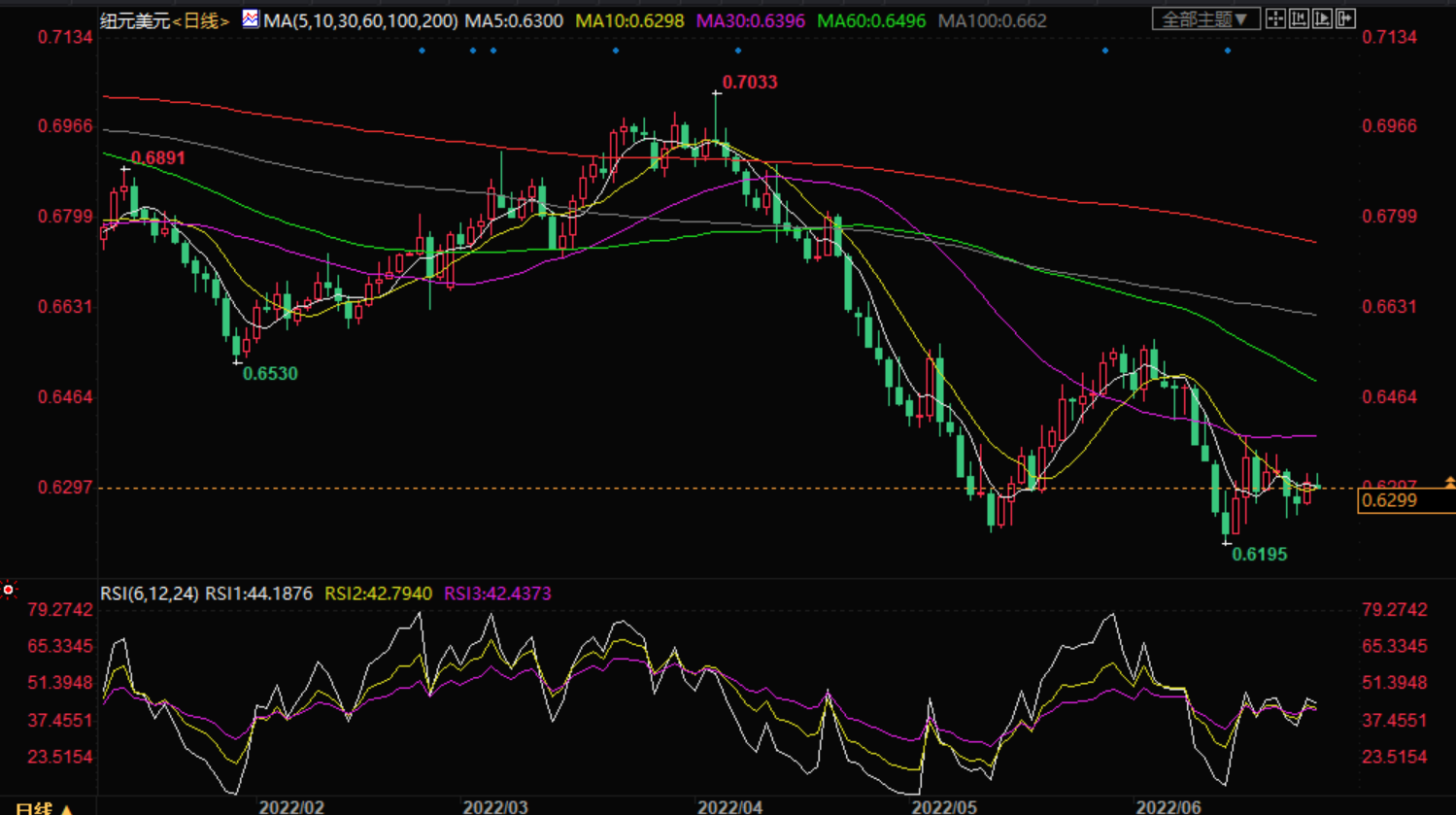 纽元兑美元在0.6315附近挣扎着延续四年来的首次周涨幅,在周一亚洲交易时段的最初几个小时内下跌了0.10%。新西兰元对上周为美元的疲软而欢呼,以说服买家,但围绕中国、俄罗斯和全球衰退的担忧似乎对最近的报价造成了压力。 路透社(Rutr)报道称,国际清算银行(I)呼吁“迅速而果断”地提高利率,以防止通胀飙升演