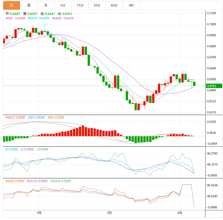 周三,纽元/美元刷新盘中低位处在0.6480附近,未延续前日自两周低点反弹的势头,因为周线阻力考验多头。 基本面上,日内无经济数据公布,纽元/美元可能跟随全球市场波动。今天没有本地数据,新西兰元可能会继续跟随全球节奏跳动,值得争议的是,纽元最大下行动能是美元疲软,而国内因素(经济硬着陆等)似乎对纽元构