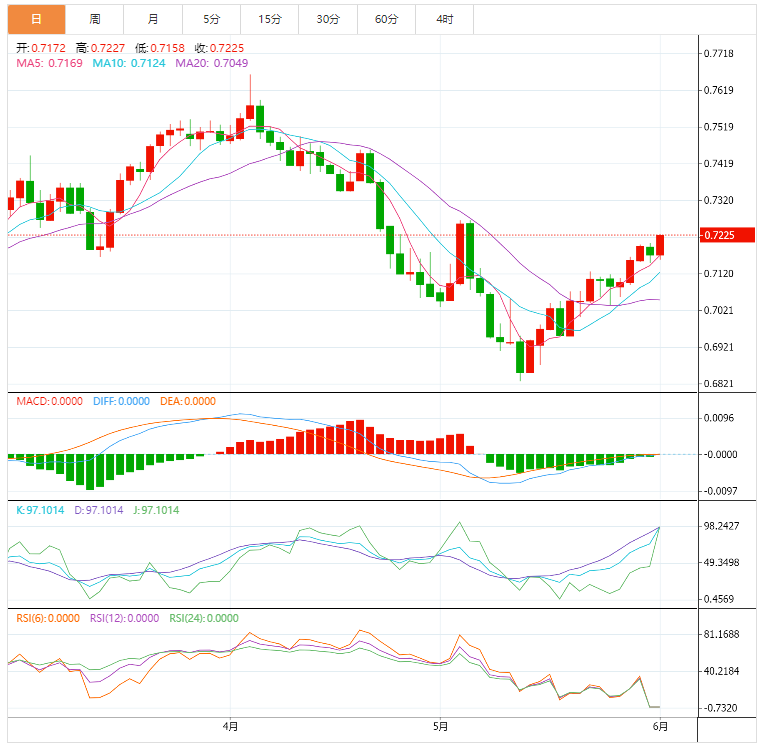 澳元兑美元保持在0.7170附近的低位,削弱了盘中低点的反弹,尽管澳大利亚4月份的贸易数据更加强劲。原因可能与周四亚洲市场的低迷情绪有关。 澳元兑美元汇率走势基本面解读 澳大利亚的贸易平衡升至104.95亿美元,高于市场预期的93亿美元和此前的9314亿美元。进一步的数据显示,出口增长至1%,而此前的数据为0%,而