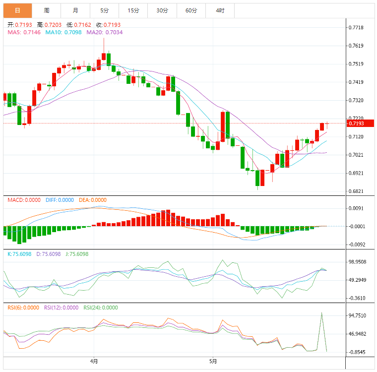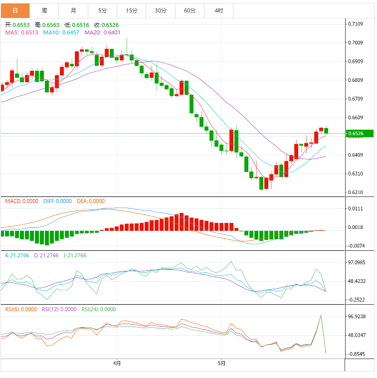 纽元兑美元从盘中低点反弹,但仍在三周高点附近承压。新西兰元对最近的回落可能与中国和新西兰的混合经济以及美元的反弹有关。 基本面上,中国5月份的官方活动数据明显收缩,中国国家统计局制造业I数据符合49.6的预期,低于此前的47.4,而非制造业I数据则降至47.8,低于50.7的市场共识。另一方面,新西兰4月建筑
