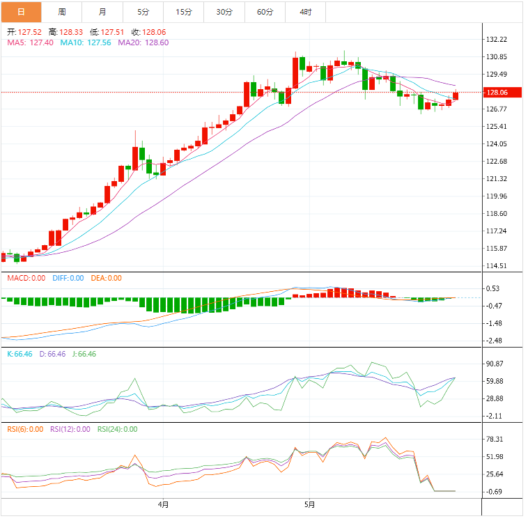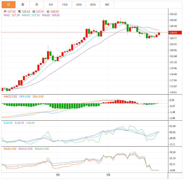 随着周二市场全面回归,美元兑日元在盘中触及127.99附近的高点。在美国国内数据喜忧参半、风险情绪高涨的情况下,日元对在美国国债收益率走强的情况下升值,重新升至周高点,延续了本周开盘的涨势。 日本4月份失业率降至2.5%,低于此前预期的2.6%,而当月零售贸易同比也上升至2.9%,高于此前预期的2.6%,并下调了0.7%