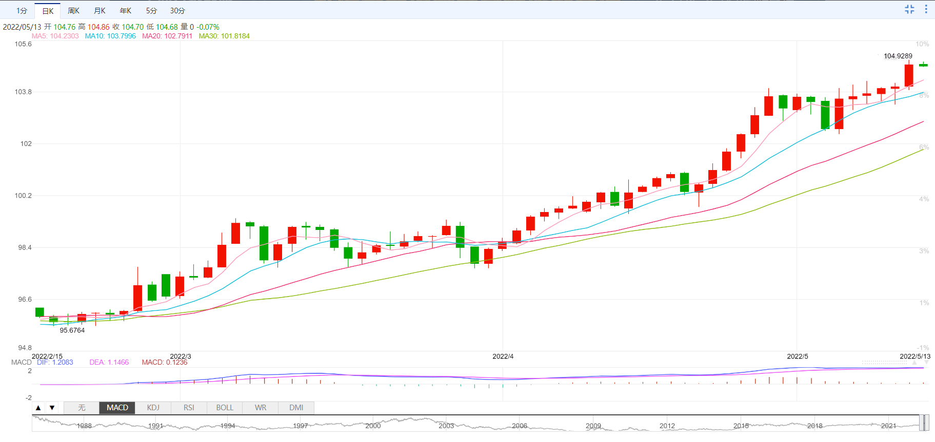 在4月份通胀率高于预期后,美元出现温和上涨。美元继续升势,投资者纷纷涌入传统避险资产。今年以来,美元一路飙涨。随着美联储进一步收紧货币政策,市场分析人士预计国际储备货币将进一步升值。 根据美国劳工统计局(L)的数据,4月份美国年通货膨胀率放缓至8.3%,高于市场预测的8.1%。剔除波动较大的食品和能源部门
