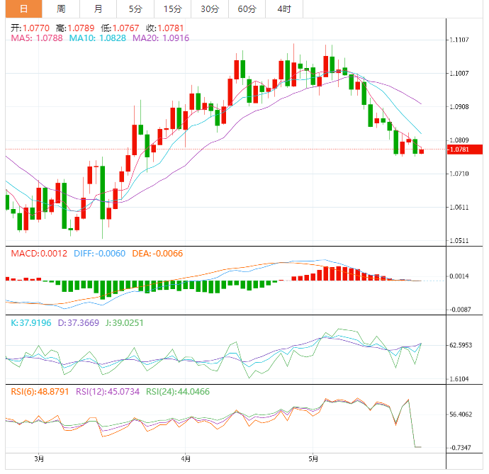周三盘中,欧元兑美元上涨至1.0782,涨幅0.10%。 欧元基本面:欧元/美元进一步扩大反弹至1.0780阻力上方。由于美元指数在103.50以下保持平衡,欧元/美元得到了一些牵引力。早些时候,欧元/美元在跌至1.0760附近后出现反弹,因为美元指数在进一步扩大其在前一周高点103.62上方的上行趋势时面临激烈的障碍。 欧元技