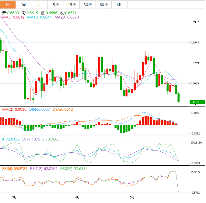 周三盘中,澳元兑美元下跌至0.6572,跌幅0.58%。 澳元基本面:澳元可能会继续承压,因为市场预期澳储行会暂停政策紧缩路径。澳大利亚经济已经开始放缓,因为劳动力市场状况和经济活动正面临著加息带来的压力。 澳元技术面,澳元兑美元现在显示出明显的负面交易,接近我们第一个等待的目标位0.6550,我们建议继续下