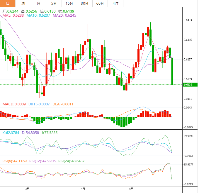 纽元兑美元延续了前一天从0.6300整数关口开始的跌势,在新西兰储备银行本周三宣布其政策决定后,纽元兑美元受到沉重的抛售压力。欧洲盘早盘,现货价格的下行轨迹仍未中断,并在最后一小时将现货价格拉低至近一个月低点,在0.6130附近。 新西兰央行(RZ)发出信号,表示将结束1999年以来最激进的加息周期,令市场措手