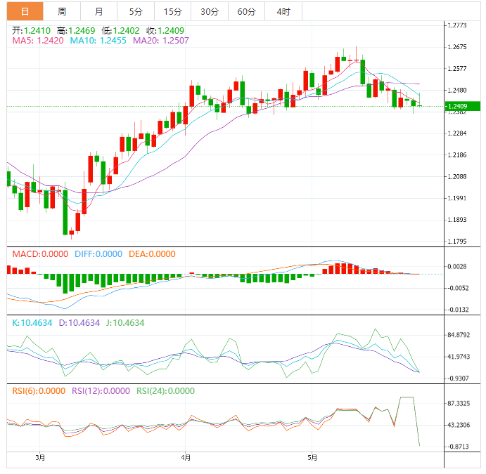 周三盘中,英镑兑美元下跌至1.2409,跌幅0.06%。 英镑基本面:英镑/美元在1.2465附近续创盘中高点,因为英国4月通胀数据增幅超过预期。美元在关键数据/事件之前的回撤,以及由于对美国违约的新的担忧,可能为英镑/美元的最新涨势增添力量。 英镑技术面:英镑兑美元显示出一些看涨倾向,重新测试了头肩形态的突破领