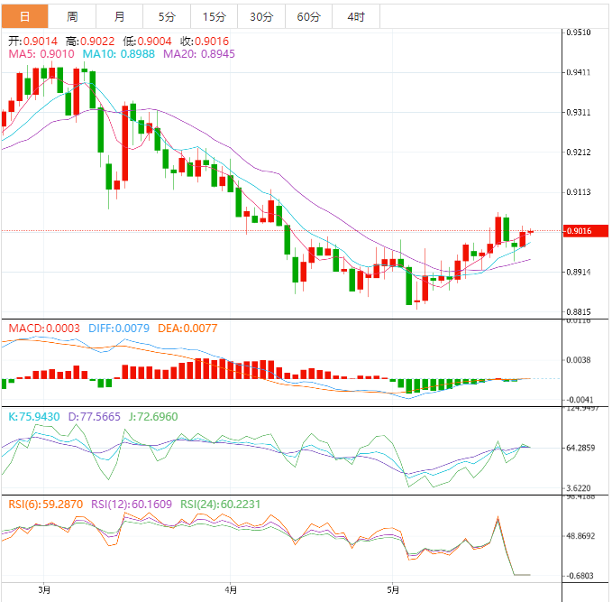 周三盘中,美元兑瑞郎上涨至0.9016,涨幅0.02%。 基本面上,美元/瑞郎自0.9010相邻支撑位出现一些反弹。美元/瑞郎在0.9010附近筑底后反弹,焦点正转向5月美联储会议纪要。5月美联储会议纪要将对美联储主席杰罗姆·鲍威尔加息25个基点的原因提出详细解释。此外,投资者还将寻找有关美联储利率指引的线索。然而,美联储