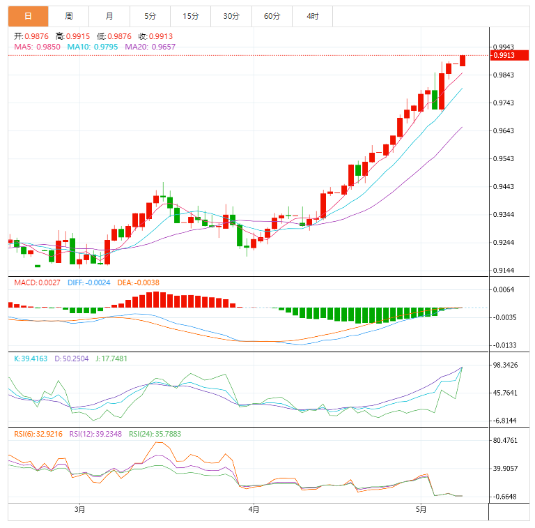 周一,美元兑瑞郎在亚洲市场早盘攀升。美元兑瑞郎经历了一个看涨的开放驱动期,因为美元兑瑞郎货币对从0.9885的开盘位置开始走高。美元指数走强后,美元兑瑞郎出现更强劲的反弹。 由于美联储(Fd)在6月份连续大幅加息的可能性越来越大,美元指数正在向北移动。美国劳工统计局报告称,美国非农就业人数(F)为42.