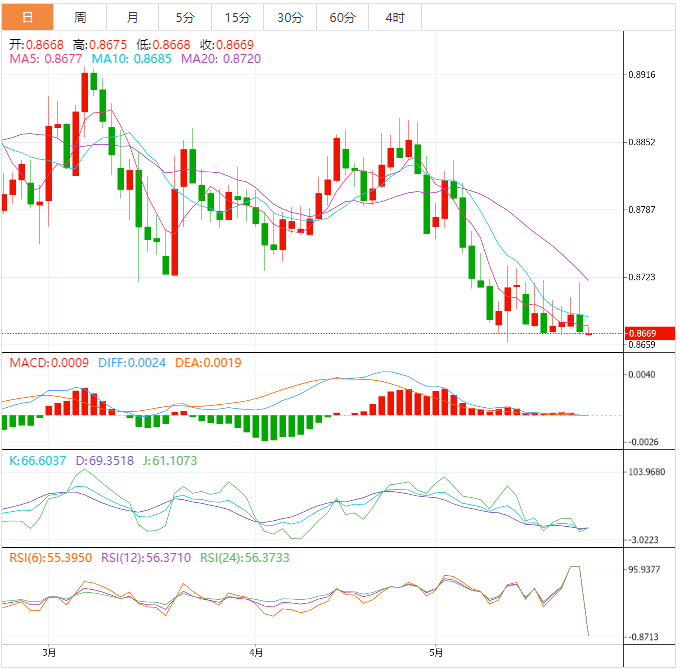 周三盘中,美元兑瑞郎从直接支撑位0.9010有所回升。瑞郎在0.9010附近筑底后反弹,因投资者将注意力转向联邦公开市场委员会(FOC)5月会议纪要的发布。 联邦公开市场委员会(FOC)会议记录的公布将详细解释美联储(Fd)主席杰罗姆·鲍威尔(Jroowll)加息25个基点的原因。此外,投资者将寻找有关利率指引的线索。然而