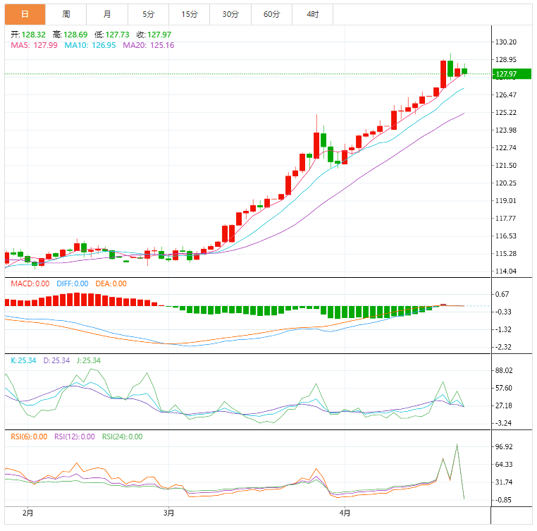 美元/日元上涨0.17%,处在128.59附近,整理于128.26和128.69区间。继美联储主席鲍威尔在华盛顿特区举办的国际货币基金组织和世界银行春季会议发表讲话,隔夜美债收益率飙升,美元/日元获得提振。 基本面上,日本将向本届国会提交额外预算,以补充储备,为支出提供资金,以缓解原材料价格上涨带来的冲击。美国上周初请