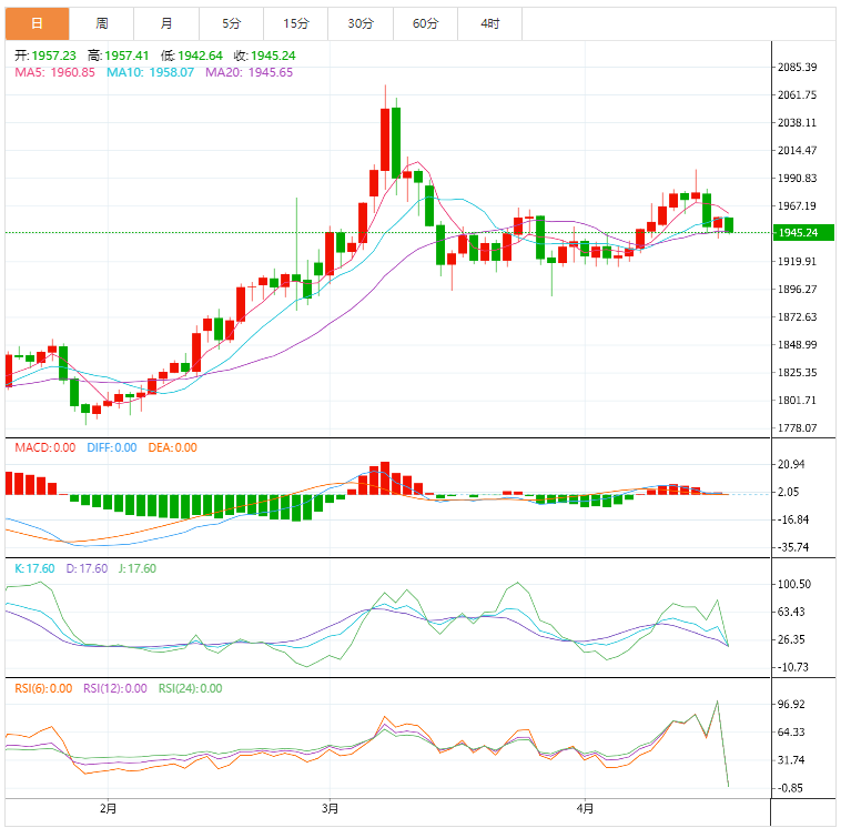 周四(4月21日),国际金价走弱,美债收益率反弹,增加持有非孳息资产的机会成本。但乌克兰危机及其对全球经济的潜在冲击仍支撑黄金避险需求。美国通胀年率创逾40年来最快增速,美联储将加快升息节奏的预期导致美债收益率走高。本周早些时候,由于对俄乌冲突和通胀压力上升的担忧增加了避险买需,黄金一度逼近2000美元重要