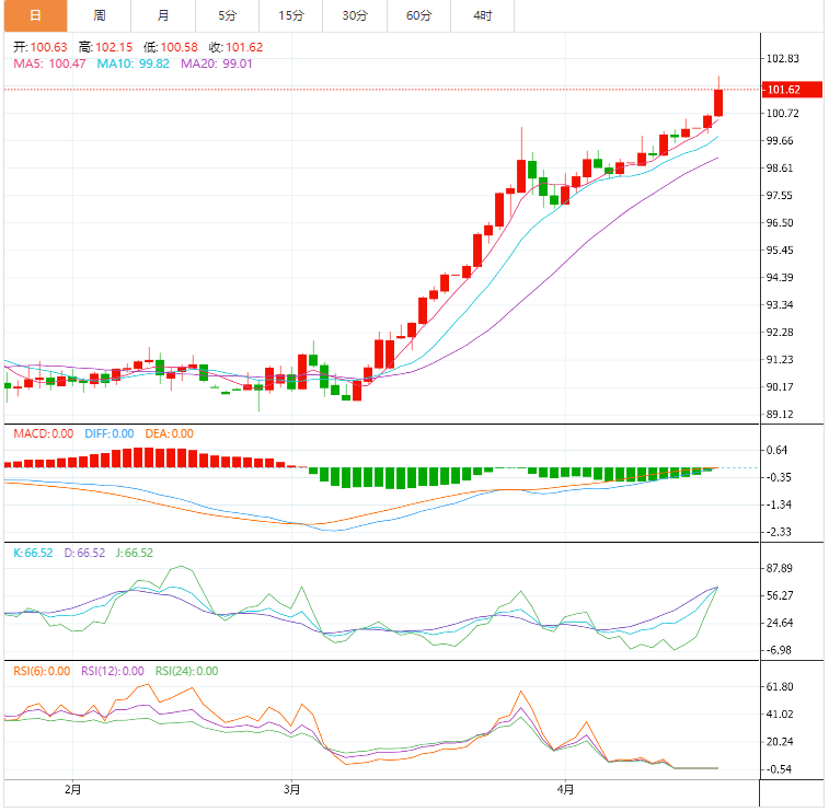 原油市场走势综述 周三亚盘,美油现报103.26美元/桶;油价周二下跌近5%,此前国际货币基金组织(IF)下调经济增长预期并就通胀上升发出警告,引发了需求担忧,悲观的前景加剧了美元处于两年高位带来的压力。 日内重点关注IA数据,美联储多位官员讲话;周四2:00美联储公布经济状况褐皮书;YX纽约原油5月期货受