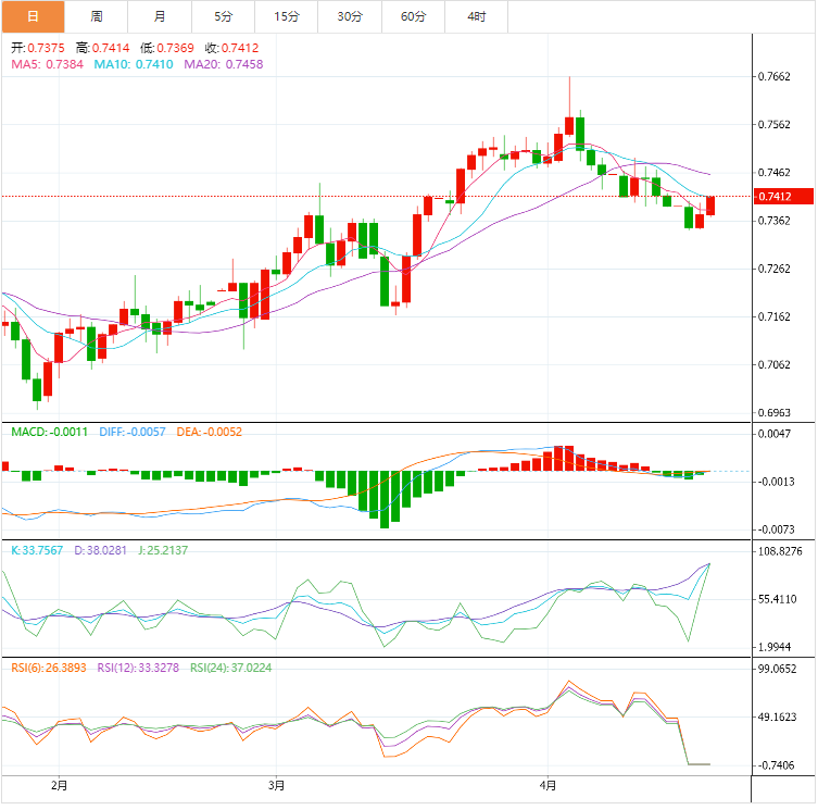 澳元今日上扬,但在0.7400附近挣扎,市场因美元走强和市场风险情绪而收窄。澳元兑美元报0.7375,反映出对外汇综合体中风险敏感货币的偏好,不过受美元走强的影响。 澳元兑美元汇率走势基本面解读 地缘政治主导着新闻头条。俄罗斯在乌克兰东部的攻势,以及缺乏部长级的和平谈判,让投资者对停火毫无希望。因此,投