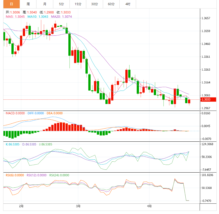 英镑/美元基本面分析: 1、市场对避险资产的需求有所增强,英镑/美元已跌破心理支撑位1.3000。周二市场维持风险规避,打压风险资产,英镑/美元已经录得三连跌。进一步指引方面,投资者将密切关注周四美联储主席鲍威尔将发表的讲话。英国将于周五公布零售销售数据。英国零售销售期值为2.8%,前值7%。 2、市场预期美