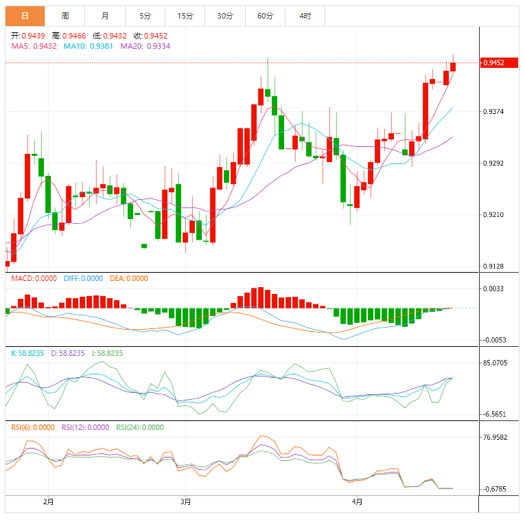 市场维持负面情绪吸引避险资产,美元/瑞郎周二连续五日上涨。美元/瑞郎徘徊在周一高点0.9454附近,预计若汇价突破该水平将加大涨幅。 基本面上,美联储大幅加息的预期不断加大,提振美元指数反弹。美元指数接近101.00,因为美联储除了加快加息外别无选择。继美联储成员詹姆斯·布拉德发表鹰派言论后,美元已经大幅飙