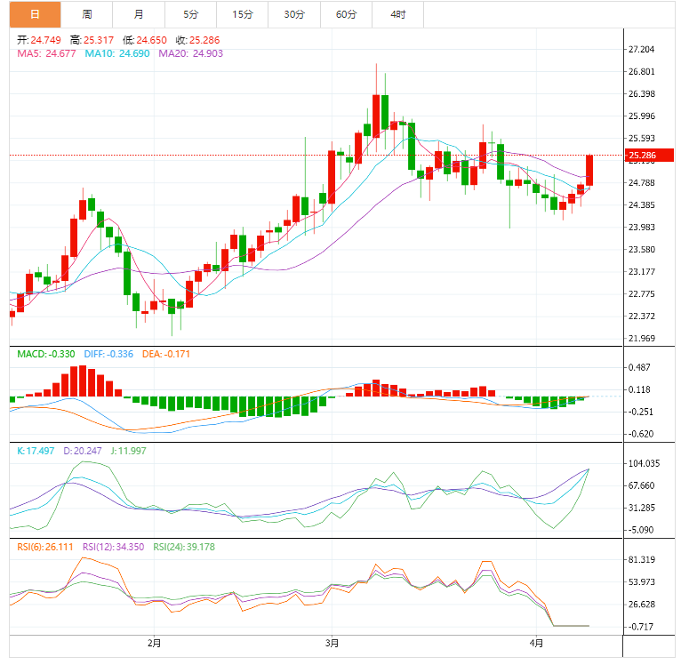 随着市场对近期有关俄乌战争的消息以及中国进一步扩大封锁的风险感到焦虑,全球股市的避险交易抵消了全球贵金属市场收益率持续大幅上升的负面影响。事实上,尽管美国10年期国债收益率进一步上涨了3-4个基点,达到2.75%以上的多年新高,从而增加了持有非收益资产(如贵金属)的机会成本,现货银的交易当日涨幅超过1.7%。