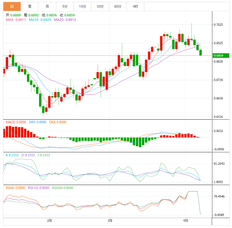 周五,纽元兑美元连续第二个交易日下跌,跌破200日和21日移动均线,这两个移动均线都位于0.6900水平的北部,也跌破了这个大数字。最近几个小时,抛售压力有所缓解,纽元兑美元在0.6880触及底部,在3月底0.6875区域的低点之前的一些买盘提供了一些支撑。 新西兰元兑美元周四表现不佳,与风险偏好/对商品敏感的十国集团