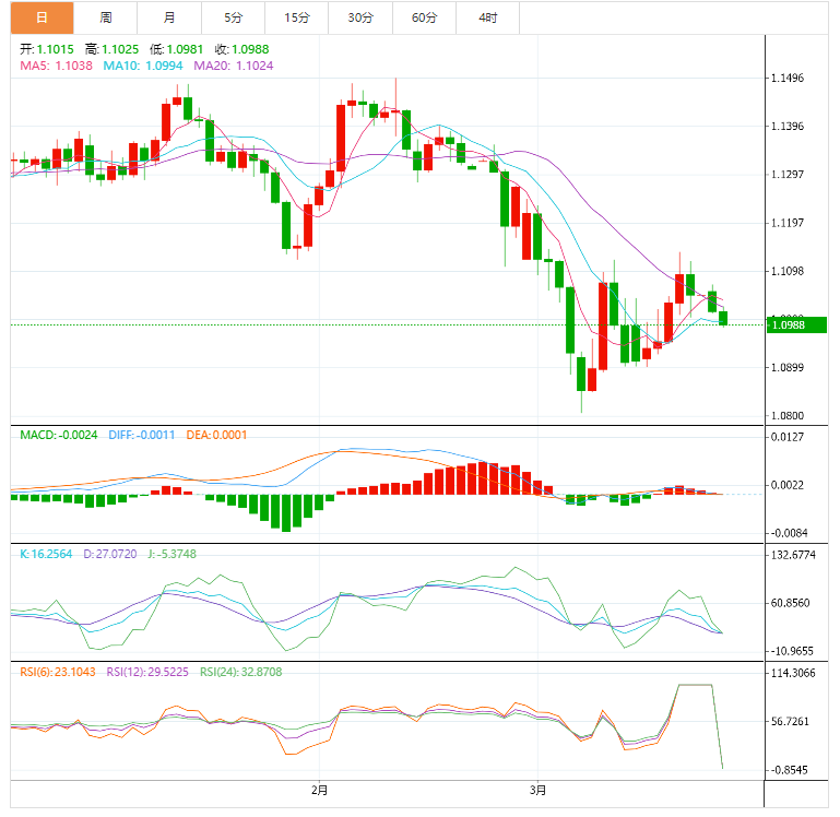周二欧洲市场早盘,欧元兑美元缩减了约1.1000的盘中跌幅。即便如此,由于债券卖家的强势推高美元,美元这一主要货币对仍守住了2007年3月以来的上一个支撑位的下行突破。 欧元/美元汇率走势基本面解读 也就是说,美国10年期国债和2年期国债收益率均升至2019年5月以来的新高,截至发稿时,两年期国债的买入价分别接