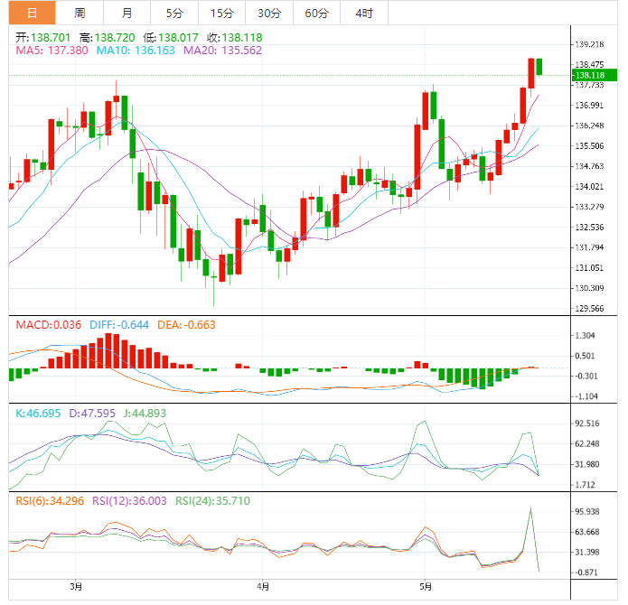 周五盘中,美元兑日元下跌至138.14,跌幅0.41%。 基本面上,美元/日元七日以来首次日线下跌,处在138.50附近,即便空头挣扎。在这期间,美元/日元测试4日上升支撑线以及短期上升趋势线,以挑战空头。也就是说,美元/日元最新回撤可能与相对强度指标(14)超买,以及美联储主席鲍威尔的讲话和美国债务上限谈判前市场维持