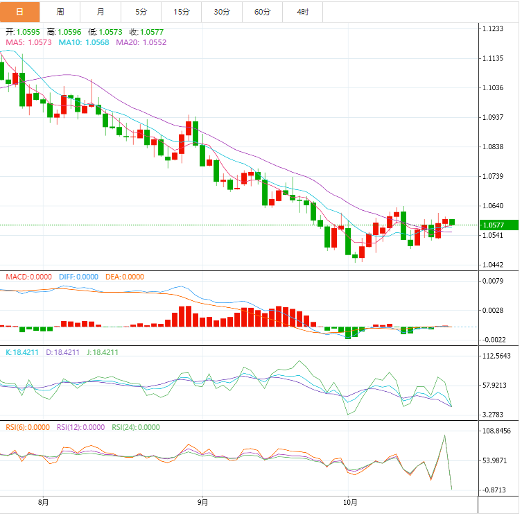 欧元兑美元在周一欧洲早盘结束了连续两天的上涨。市场参与者等待欧洲央行周四的利率决定,预计不会有利率变化。市场预计欧洲央行的加息周期已经结束,但至少要到2024年7月,随着对抗高通胀的战斗继续进行,欧洲央行才会开始放松政策。截至发稿时,主要货币对当日下跌0.15%,交易价为1.0577。 从技术面来看,欧元兑美