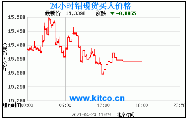 铝锭价格走势图今日最新铝锭行情(2021年4月25日) 今日最新铝锭行情:15.3390 备注:以上铝锭价格仅供参考,请以官方价格为准。