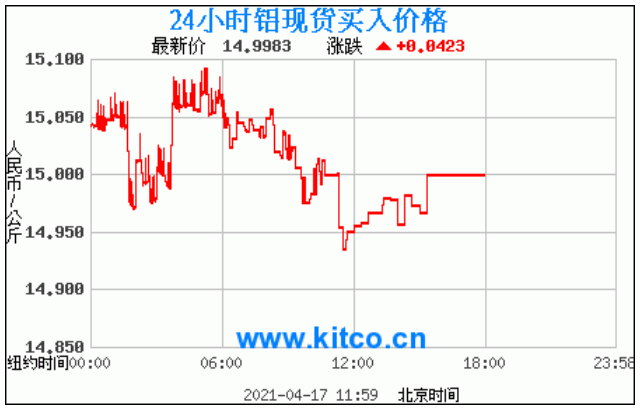 铝锭价格走势图今日最新铝锭行情(2021年4月19日) 今日最新铝锭行情:14.9983 备注:以上铝锭价格仅供参考,请以官方价格为准。
