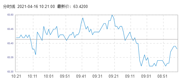 WTI原油价格实时(2021年4月16日) 名称 最新价 涨跌 涨跌幅% 开盘价 昨收价 最高价 最低价 WTI 63.43