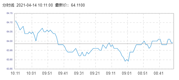 布伦特原油价格实时(2021年4月14日) 名称 最新价 涨跌 涨跌幅% 开盘价 昨收价 最高价 最低价 布伦特 64.