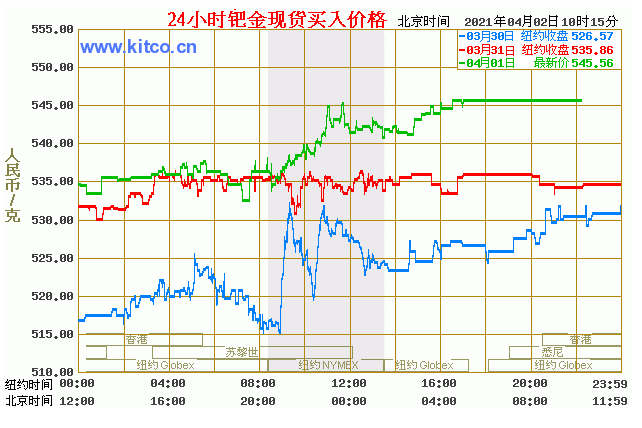 钯金价格走势图今日最新钯金行情(2021年4月2日) 今日最新钯金行情:545.56 备注:以上钯金价格仅供参考,请以官方价格为准。