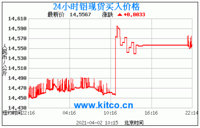 铝锭价格走势图今日最新铝锭行情(2021年4月2日) 今日最新铝锭行情:14.5567 备注:以上铝锭价格仅供参考,请以官方价格为准。