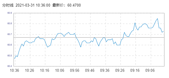 WTI原油价格实时(2021年3月31日) 名称 最新价 涨跌 涨跌幅% 开盘价 昨收价 最高价 最低价 WTI 60.47