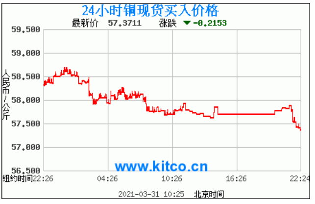 铜价格走势图今日最新铜价行情(2021年3月31日) 今日最新铜价:57.3711涨跌:-0.2153 备注:以上铜价格仅供参考,请以官方价格为准。