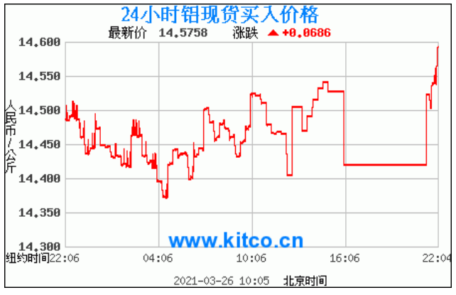 铝锭价格走势图今日最新铝锭行情(2021年3月26日) 今日最新铝锭行情:14.5758 备注:以上铝锭价格仅供参考,请以官方价格为准。