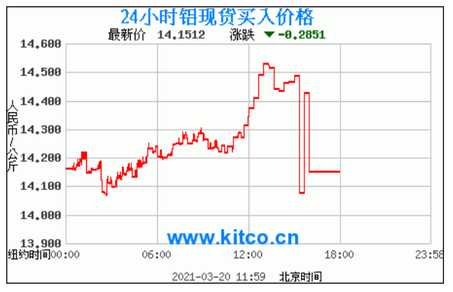 铝锭价格走势图今日最新铝锭行情(2021年3月22日) 今日最新铝锭行情:14.1512 备注:以上铝锭价格仅供参考,请以官方价格为准。
