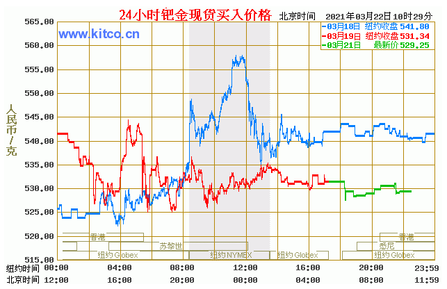 钯金价格走势图今日最新钯金行情(2021年3月22日) 今日最新钯金行情:529.25 备注:以上钯金价格仅供参考,请以官方价格为准。