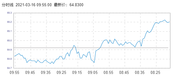 WTI原油价格实时(2021年3月16日) 名称 最新价 涨跌 涨跌幅% 开盘价 昨收价 最高价 最低价 WTI 64.79