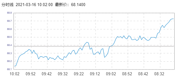 布伦特原油价格实时(2021年3月16日) 名称 最新价 涨跌 涨跌幅% 开盘价 昨收价 最高价 最低价 布伦特 68.