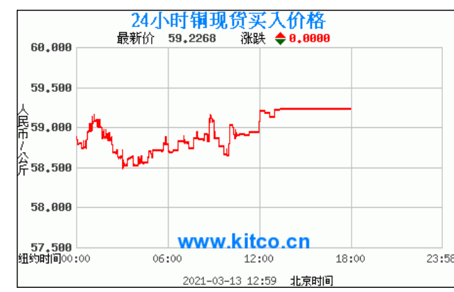 铜价格走势图今日最新铜价行情(2021年3月15日) 今日最新铜价:59.2268涨跌:0.0000 备注:以上铜价格仅供参考,请以官方价格为准。