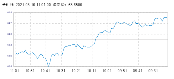 WTI原油价格实时(2021年3月10日) 名称 最新价 涨跌 涨跌幅% 开盘价 昨收价 最高价 最低价 WTI 63.67